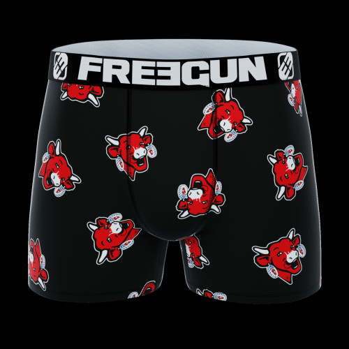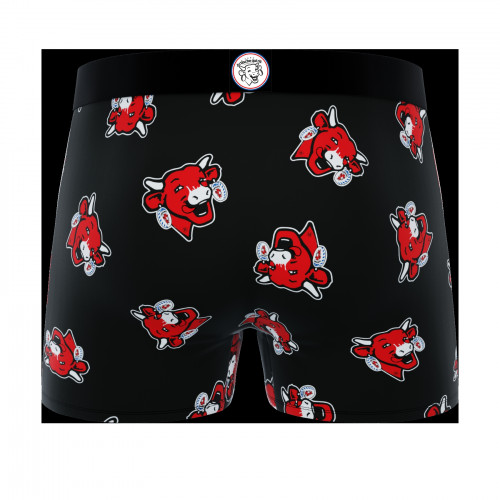 Put a smile on your face with these Freegun x The Laughing Cow® microfiber boxer shorts for men featuring red cow heads.