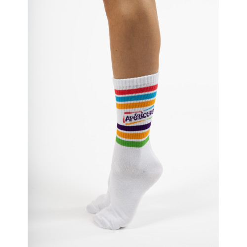 Find out moreThe iconic square cheeses that are a staple of any aperitif are now available on our socks! A new Apéricube® x Label Chaussette collaboration featuring two new designs. These socks will quickly become a wardrobe essential. This pair of Apéricube® Sport White Multicolor socks is also available in a Classic Blue version.