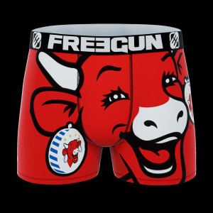 Put a smile on your face with these Freegun x The Laughing Cow® microfiber kids' boxer shorts featuring blue patterned sections.