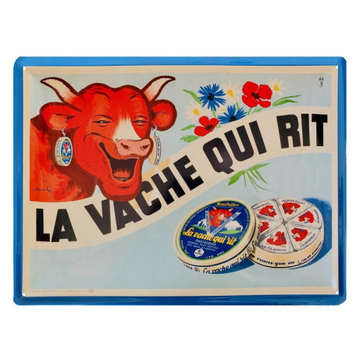 Plaque en métal embossé vintage, qui reflète les origines de La vache qui rit®.