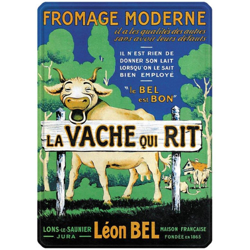 Publicité originale du fromage La Vache qui rit® reproduite sur une plaque métal.