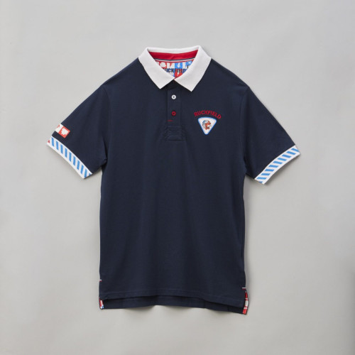 Mettez de la couleur et de l'humour dans votre garde-robe avec ce polo bleu marine à manches courtes signé Ruckfield x La Vache qui rit. ®